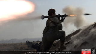 Kantor Berita Islamic State provinsi Salahuddin merilis reportase foto dari operasi militer Islamic State dengan nama sandi ‘Ghozwah Abu Khattab asy Syaihawiy’, menaklukkan sejumlah teritorial dan pos pasukan Shofawiyyin di kota Baiji dan Samarra. (Azzammedia/infoduniamiliter)